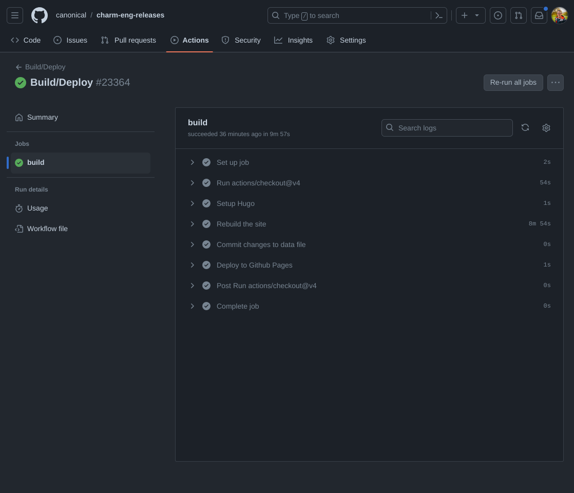 The important thing for this post is that I look after >10 software teams, who use two different software forges (Github and Launchpad), and all push artifacts into both the Snap Store and the Charmhub. I wanted a way to keep track of their releases, and provide a tool that my managers could use to do the same. Put simply, I wanted a unified view of: